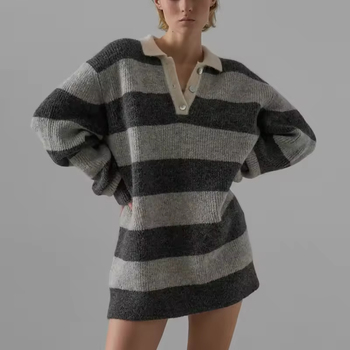 Fabricant de pulls vente en gros de logo personnalisé pour femmes pulls tricotés en mohair de haute qualité tricots pull rayé polo rugby pour femmes