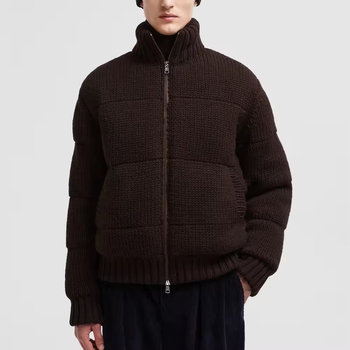 Cardigan en tricot épais avec logo personnalisé pour l'hiver Cardigan en laine rembourré à col roulé avec fermeture éclair pour le dos des hommes