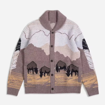 Motif personnalisé imprimé partout Jacquard laine d'agneau hommes Cardigan pull hiver tricots gros bouton Vintage Cardigan hommes