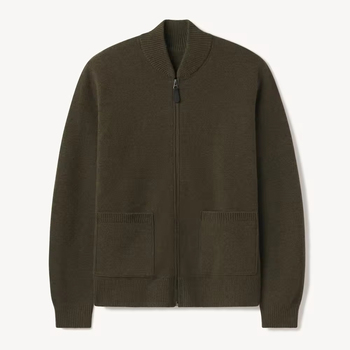 Vente en gros de blouson bombardier à fermeture éclair sur le devant de coupe classique personnalisé cardigan avec poche à manches longues pour hommes cardigan en tricot à fermeture éclair en laine mérinos