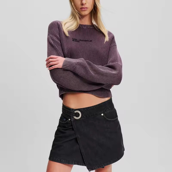 Fabricant de tricots design personnalisé logo brodé 100% coton pull en tricot côtelé vintage délavé à l'acide pull court pour femmes