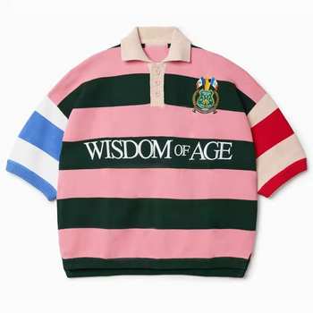 เสื้อสเวตเตอร์ฟุตบอลเสื้อสเวตเตอร์ถักแขนสั้นลายทางแนวสตรีทเสื้อถักสำหรับฤดูร้อนโลโก้ออกแบบได้ตามต้องการ