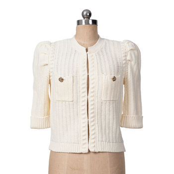 คาร์ดิแกนแขนสั้นมีกระเป๋าสำหรับผู้หญิงเสื้อสเวตเตอร์ถักแบบสั้นมีกระเป๋า